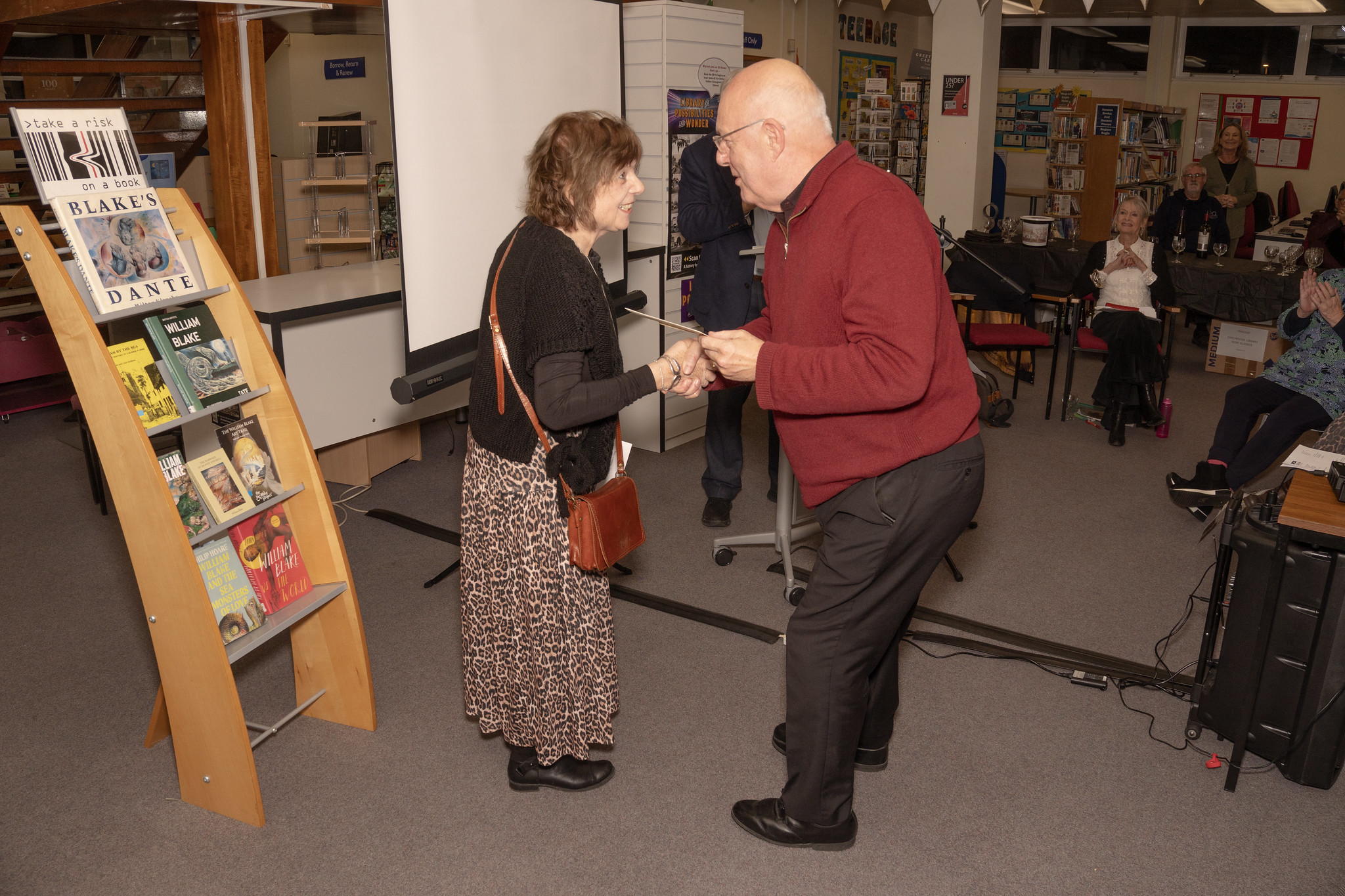 Actress Jean Rogers read and brilliantly interpreted a number of Blakes poems before reading the excellent six shortlisted poems from the competition. The three winners were presented with their prizes by the compere for the evening local author Simon Brett.
